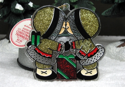 Reversible Tree Trimmers are colored acrylic ornaments that give the appearance of stained-glass. These designs were released in 1983 and are visible on both sides of the ornaments; thus "reversible." Each design has a raised outline, with each section either filled with color or left clear. Outlines were often different colors on the same designs; collectors having found two of the same ornament with outline colors differing.